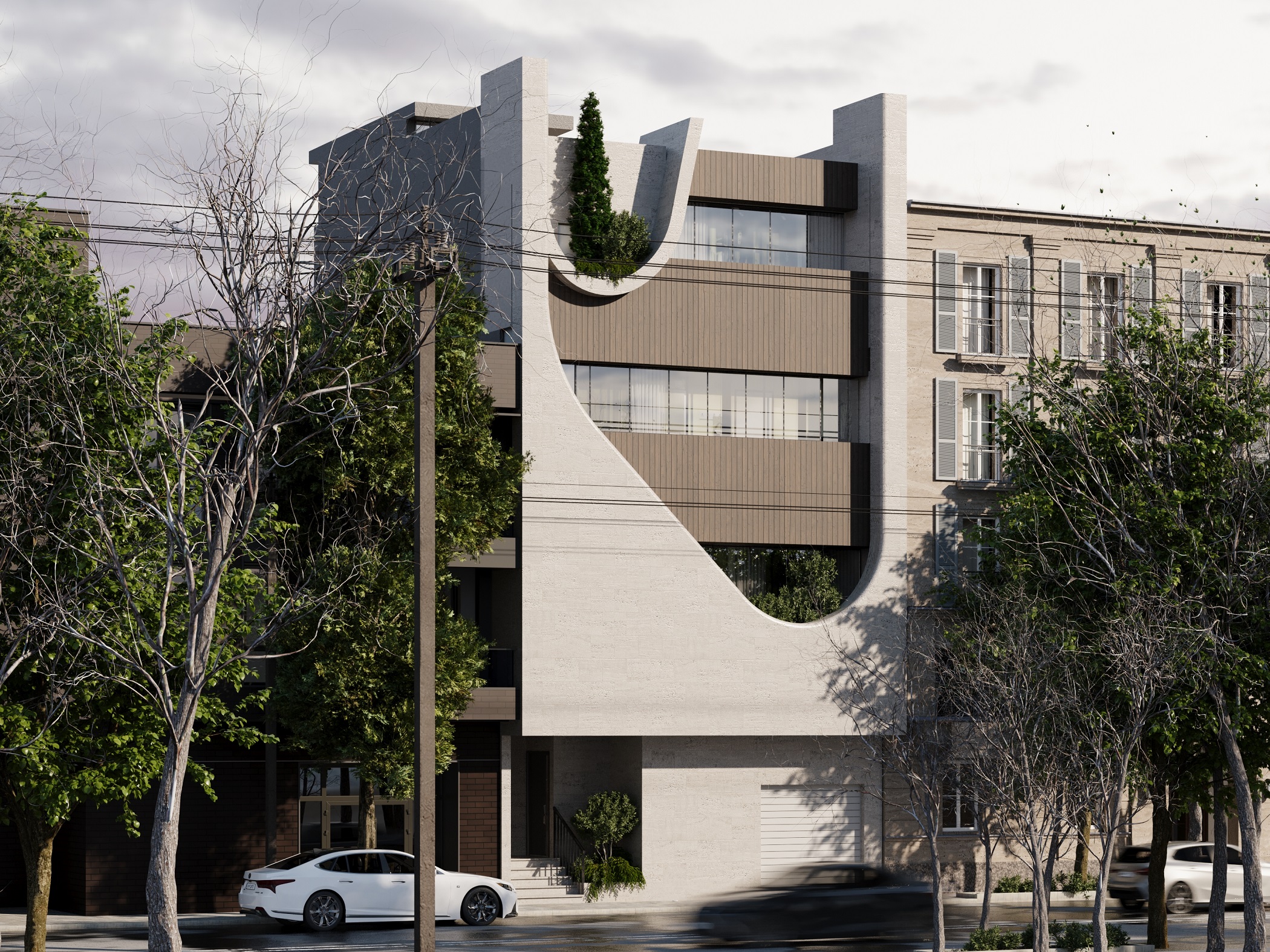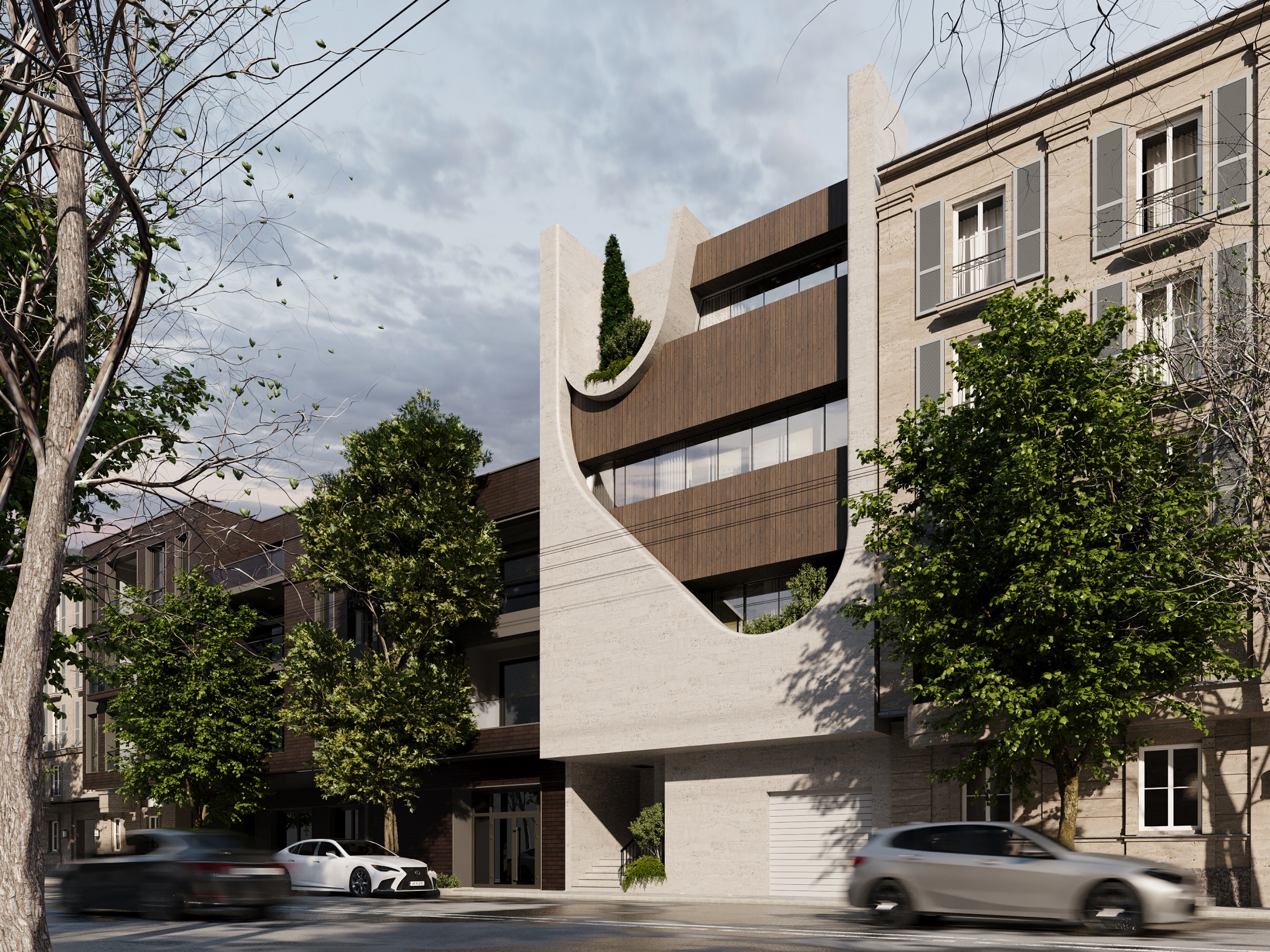 — Project Info PROJECT TYPEResidentialSTATUSin progressDESIGN YEAR2023LOCATION Amirkabir St , birjand, Iran ARCHITECTRamin hemmatiArea: 216m²Built area: 470m²Level: 4 Royesh